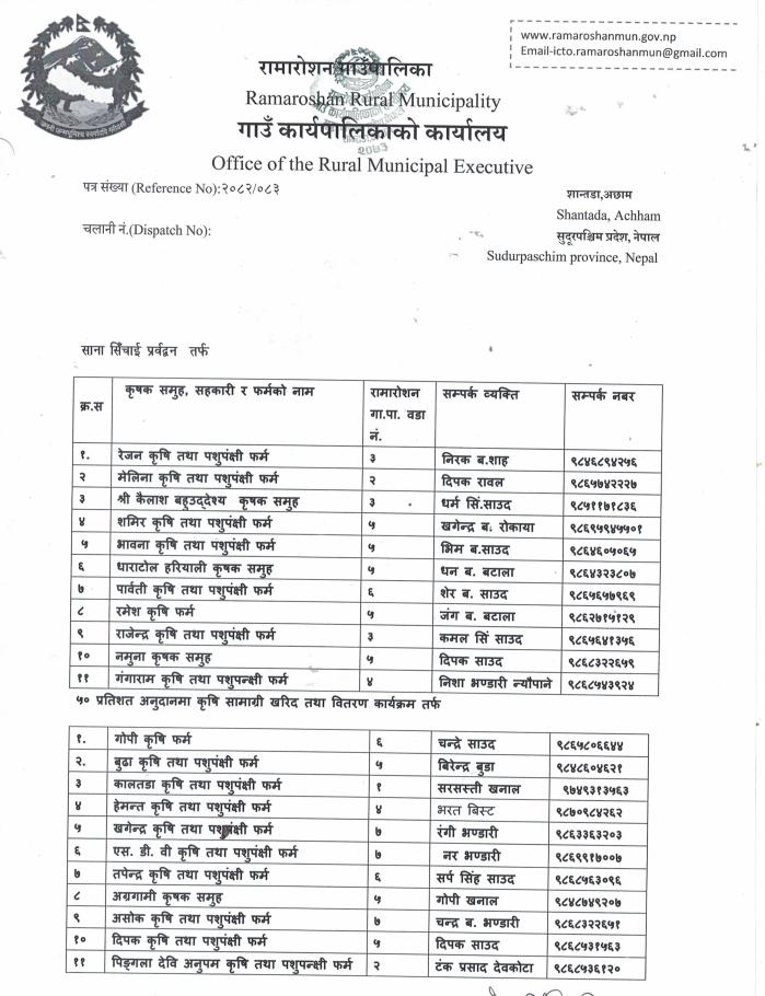 लाभग्राही छनोट सम्बन्धी सूचना।