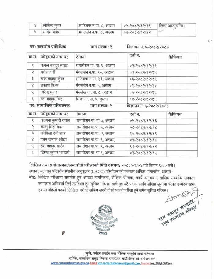 संक्षिप्त सूची प्रकाशन गरिएको सम्बन्धी सूचना ।