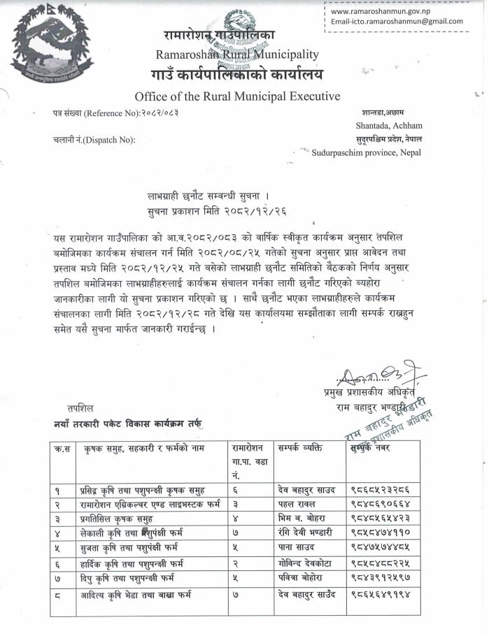 लाभग्राही छनोट सम्बन्धी सूचना।